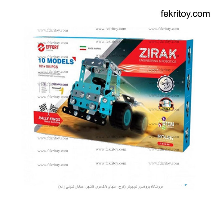 پیچیده قرار دارد. با قطعات موجود در داخل پک زیرک می توان 10 مدل ماشین متفاوت ساخت کودکان و نوجوانان می توانند با آچار، قطعات فلزی را به هم متصل کنند. جنس فلز به کار رفته بسیار مرغوب است.