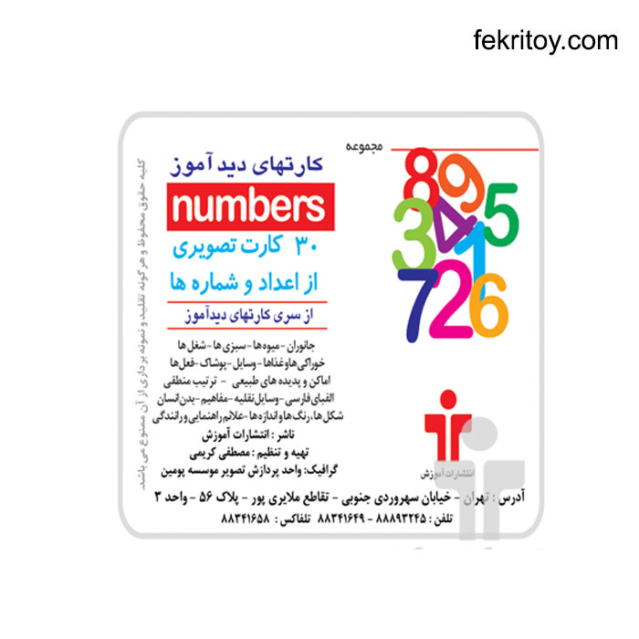 کمک آموزشی کارت دیدآموز اعداد انگلیسی شامل ۳۰ عدد فلش کارت است. فلش کارت های دید آموز برای کودکان ۱ سال به بال اطراحی شده است. به علت داشتن تنوع موضوعی زیاد، وسیله ای مناسب و مفید در تقویت حافظه دیداری و شنیداری به شمار می رود. این کارت های کمک آموزشی برای کودکان معمولی برای یادگیری موضوعات و مفاهیم متفاوت و تقویت حافظه آنها به کار می رود و در کودکانی که اختلالاتی دارند علاوه بر موارد فوق به صورت اختصاصی نیز مورد استفاده والدین و مربیان قرار می گیرد لذا برای بسیاری از مربیان گفتار درمانی پیشنهاد می شود.