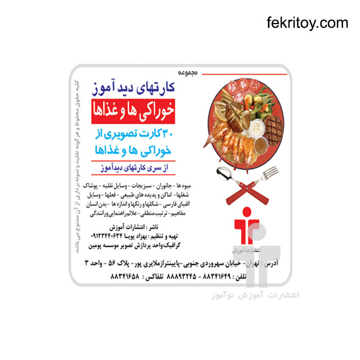 کمک آموزشی کارت دیدآموز خوراکی ها و غذاها شامل ۳۰ عدد فلش کارت است. فلش کارت های دید آموز برای کودکان ۱ سال به بال اطراحی شده است. به علت داشتن تنوع موضوعی زیاد، وسیله ای مناسب و مفید در تقویت حافظه دیداری و شنیداری به شمار می رود. این کارت های کمک آموزشی برای کودکان معمولی برای یادگیری موضوعات و مفاهیم متفاوت و تقویت حافظه آنها به کار می رود و در کودکانی که اختلالاتی دارند علاوه بر موارد فوق به صورت اختصاصی نیز مورد استفاده والدین و مربیان قرار می گیرد لذا برای بسیاری از مربیان گفتار درمانی پیشنهاد می شود.