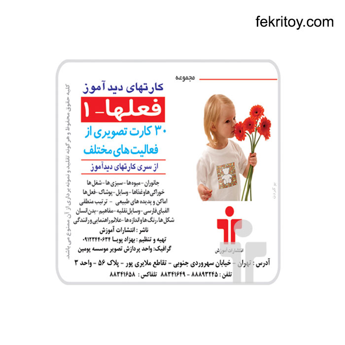 کمک آموزشی کارت دیدآموز فعل 1 شامل ۳۰ عدد فلش کارت است. فلش کارت های دید آموز برای کودکان ۱ سال به بال اطراحی شده است. به علت داشتن تنوع موضوعی زیاد، وسیله ای مناسب و مفید در تقویت حافظه دیداری و شنیداری به شمار می رود. این کارت های کمک آموزشی برای کودکان معمولی برای یادگیری موضوعات و مفاهیم متفاوت و تقویت حافظه آنها به کار می رود و در کودکانی که اختلالاتی دارند علاوه بر موارد فوق به صورت اختصاصی نیز مورد استفاده والدین و مربیان قرار می گیرد لذا برای بسیاری از مربیان گفتار درمانی پیشنهاد می شود.