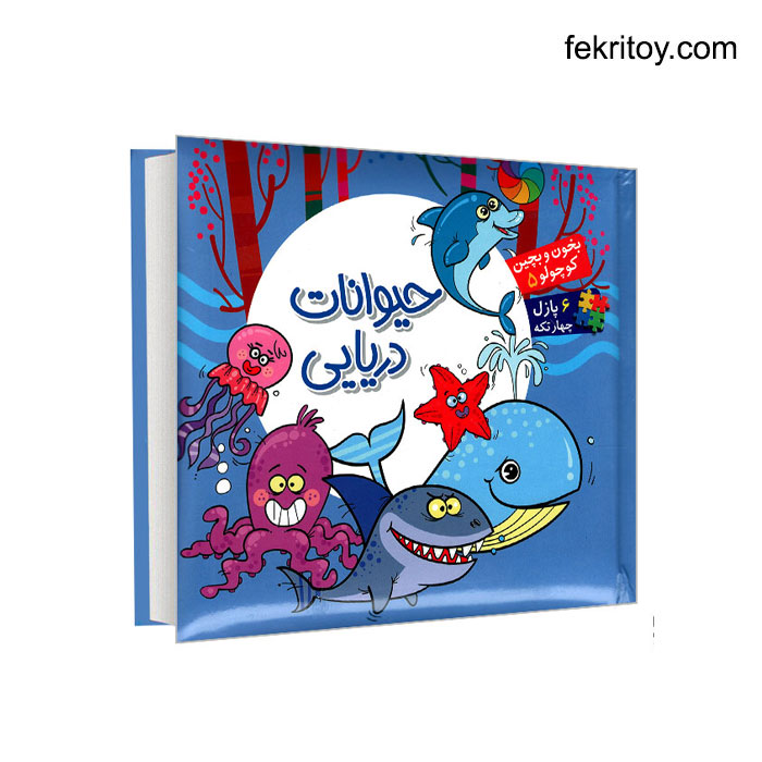 کتاب حیوانات دریایی (فارسی و انگیسی) از مجموعه دوازده جلدی "بخون و بچین کوچولو" می باشدکه بشکل مصور رنگی است.این کتاب همراه با شعرهای کودکانه برای گروه سنی 3 تا 9 سال مناسب می باشد.در هر صفحه سمت راست کتاب شعر کودکانه و صفحه سمت چپ آن تصویری متناسب با موضوع کتاب به شکل پازل 4 تکه ای وجود دارد.در کل در کتاب شش پازل 4 تکه ای وجود دارد.کتاب حیوانات دریایی پازلی/بخون و بچین کوچولو 5 را می توانید از سایت پرفسور کوچولو تهیه نمایید.