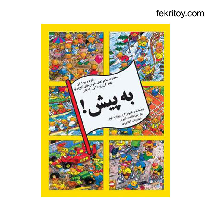 کتاب بگرد و پیدا کن خرس کوچولو به پیش، یکی از مجموعه کتابهای بگرد و پیدا کن است. این کتابها شامل تصاویری جذاب و زیبا برای کودکان است. تصاویر این کتاب هدفمند و چند لایه بوده و برای تقویت مهارتهای بینایی و شناختی کودک طراحی شدهاند. کودک با دیدن تصاویر به جستجوی شکل هدف در زمینهی شلوغ میپردازد و این امر مهارت جستجوی دیداری و نیز تحمل وی را افزایش میدهد.