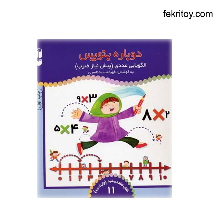 کتاب تمرین ریاضی برای کلاساولیها تدوین شده که با تمریناتی ویژه مبتنی بر تقویت منطق ریاضی و سرعت انتقال و رشد مفاهیم ریاضی تهیه گردیده است. برای انجام تمرینات هر صفحه باید از ماژیک وایتبرد استفاده شود. زیرا این کتاب به شکلی طراحی شده است که کودک می تواند بارها و بارها روی آن تمرین کند و پس از هر بار تمرین می تواند با پنبه یا پارچهای لطیف صفحات کتاب را پاک کند. کتاب دوباره بنویس11 الگویابی عددی پیش نیاز ضرب را می توانید از سایت پرفسور کوچولو تهیه نمایید.