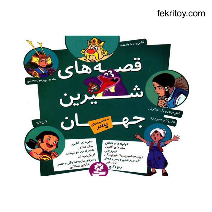 در این مجموعه، هفده قصه از میان داستان های معروف دنیا که شخصیت های اصلی آن پسر هستند جمع آوری شده و به چاپ رسیده است. مجموعهی قصه های جهان، در سه جلد متفاوت برای کودکان به چاپ رسیده است. در هر یک از جلدهای این مجموعه، قصه هایی زیبا از میان افسانه و داستان های معروف جهان گلچین شده و به چاپ رسیده است. قصه ها بر حسب شخصیت آن ها به سه گروه شخصیت دختر، شخصیت پسر و شخصیت حیوانات تقسیم و در هر یک از جلدها به چاپ رسیده اند.