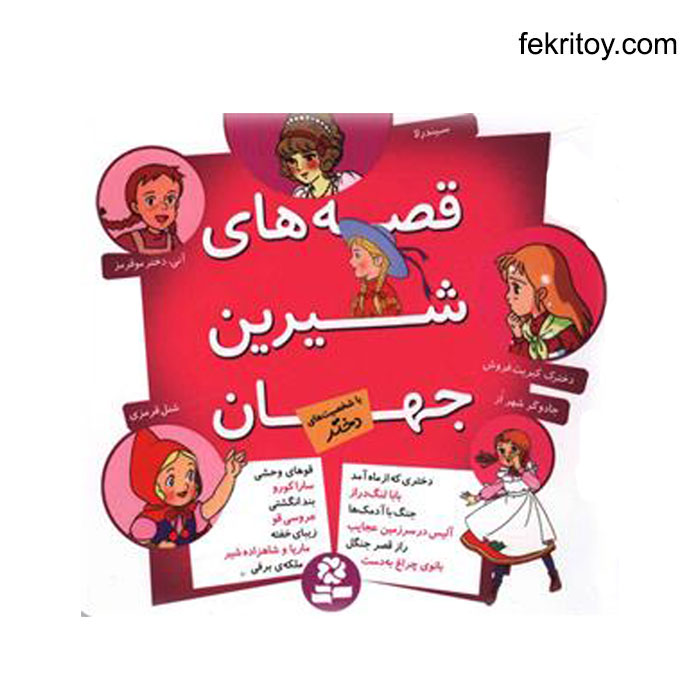 در این مجموعه، بیست و یک قصه از میان داستان های معروف دنیا که شخصیت های اصلی آن دختر هستند جمع آوری شده و به چاپ رسیده است. مجموعهی قصه های جهان، در سه جلد متفاوت برای کودکان به چاپ رسیده است. در هر یک از جلدهای این مجموعه، قصه هایی زیبا از میان افسانه و داستان های معروف جهان گلچین شده و به چاپ رسیده است. قصه ها برحسب شخصیت آن ها به سه گروه شخصیت دختر، شخصیت پسر و شخصیت حیوانات تقسیم و در هر یک از جلدها به چاپ رسیده اند.