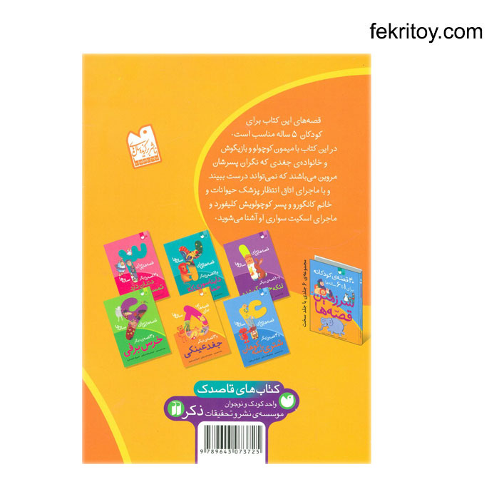 قصه های این کتاب برای کودکان 5 ساله مناسب است. در این کتاب با میمون کوچولو و بازیگوش و خانواده ی جغدی که نگران پسرشان مروین می باشند که نمی تواند درست ببیند و با ماجرای اتاق انتظار پزشک حیوانات و خانم کانگورو و پسر کوچولویش کلیفورد و ماجرای اسکیت سواری او آشنا می شوید. کتاب قصه هایی برای 5 ساله ها جغد عینکی را می توانید از سایت پرفسور کوچولو تهیه نمایید.