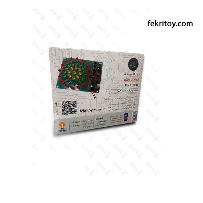 با ساخت این مجموعه که در آن تمامی قطعات الکترونیکی و لوازم مورد نیاز (نظیر باتری، سیم لحیم و سیم های اتصال دهنده دستگاه به باتری) گنجانده شده است، ضمن آنکه تا حد زیادی با دانش الکترونیک و مفاهیم ولتاژ، جریان و پالس آشنا می شوید و عملکرد ترانزیستور به عنوان اصلیترین قطعه الکترونیکی را مشاهده خواهید نمود. کیت نورهای رنگین md-ml-41mindx3 را می توانید از سایت پرفسور کوچولو تهیه نمایید.