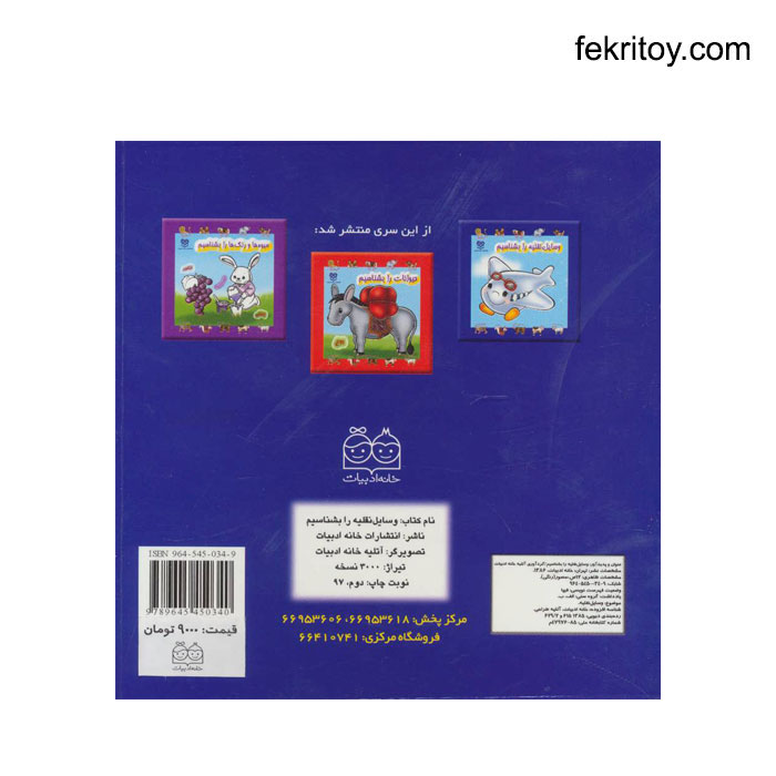 کتاب وسایل نقلیه را بشناسیم/سخت2 کتابی است با جلد ضخیم و ورقه های ضخیم که برای کودکان گروه سنی الف طراحی شده است. ضخامت ورقه ها و جلد کتاب از مزایای آن می باشد که به راحتی پاره نمی شود. در این کتاب 10 تا تصویر وسیله نقلیه با نوشته فارسی طراحی و چاپ شده است. تصاویر کتاب واضح و جذاب می باشد. کتاب وسایل نقلیه را بشناسیم/سخت2 را می توانید از سایت پرفسور کوچولو تهیه نمایید.