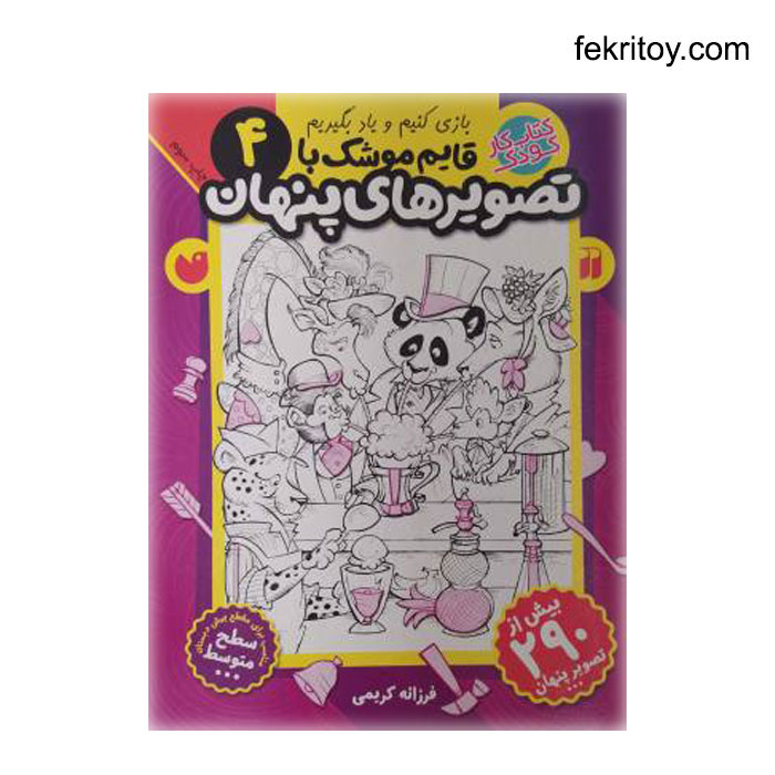این معماها غیر از لذت بخشی، ادراک تصویری (تجسمی) کودک را بهبود می بخشند و به او کمک می کنند تا میان اندازه ها و شکل ظاهری اشیا ارتباط برقرار کند. به گفته ی کارشناسان آموزش دامنه ی واژگان و اطلاعات عمومی او را گسترش می دهد و کمک می کند تا اعتماد به نفس بیشتری داشته باشد. در این کتاب بیش از 290 تصویر پنهان وجود دارد.