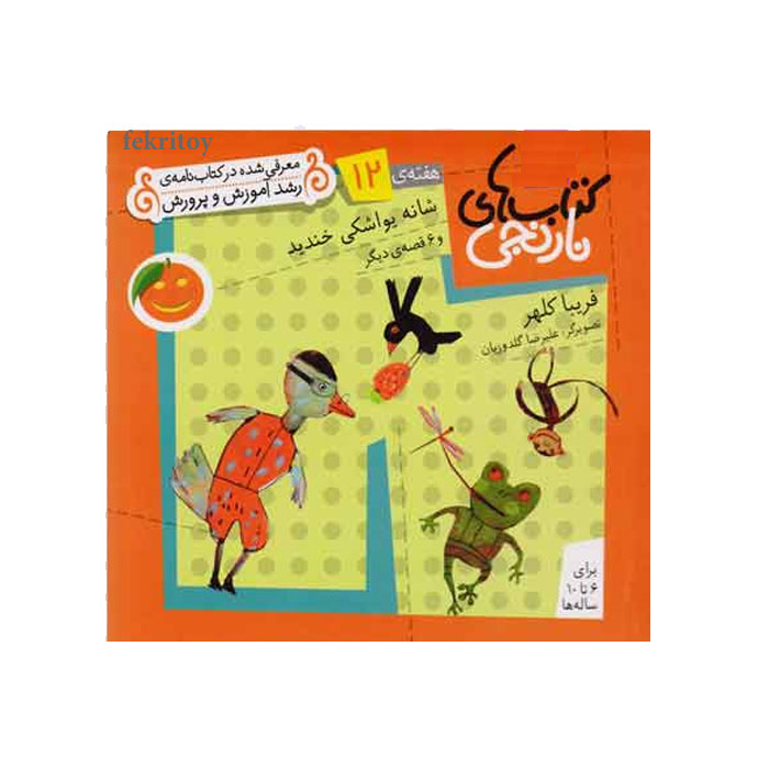 " شانه یواشکی خندید"ازمجموعه کتاب های نارنجی برای رده های سنی(الف)و (ب)می باشداین مجموعه شامل 56 کتاب است که هر کتاب از هفت قصه کوتاه وتخیلی با تصاویر جذاب وزیبا برای یک هفته کودکان تدوین شده است.موضوعات قصه هابسیار متنوع می باشدگاهی در موردزندگی پرنده ها وحیوانات ،گاهی در مورد زندگی بچه ها وگاه قصه زندگی یک شیء بی جان است."کتاب های نارنجی(شانه یواشکی خندید)"نیز از هفت قصه برای هفت روز کودکان تشکیل شده که می توانید از فروشگاه پروفسور کوچولو تهیه نمایید