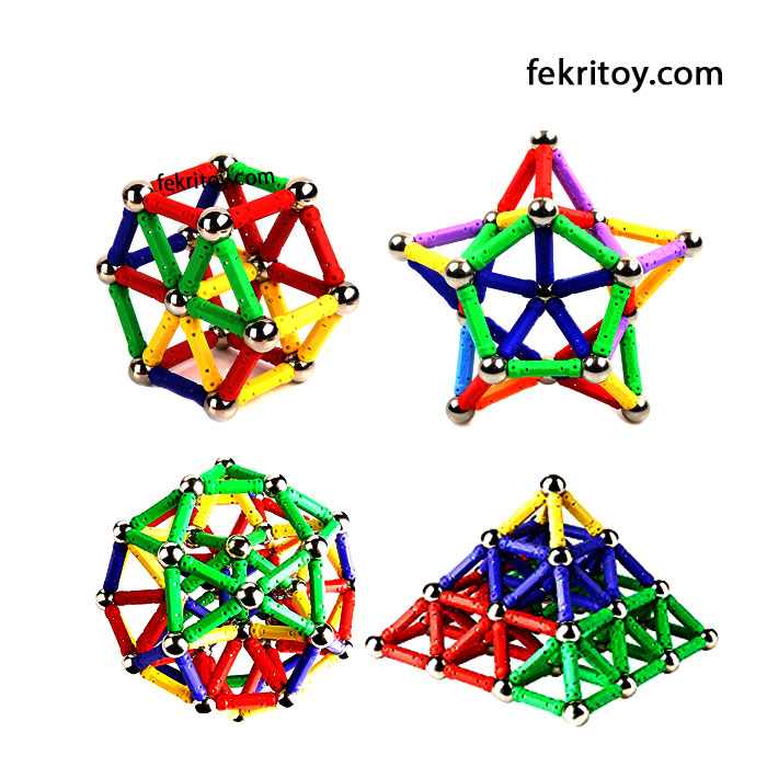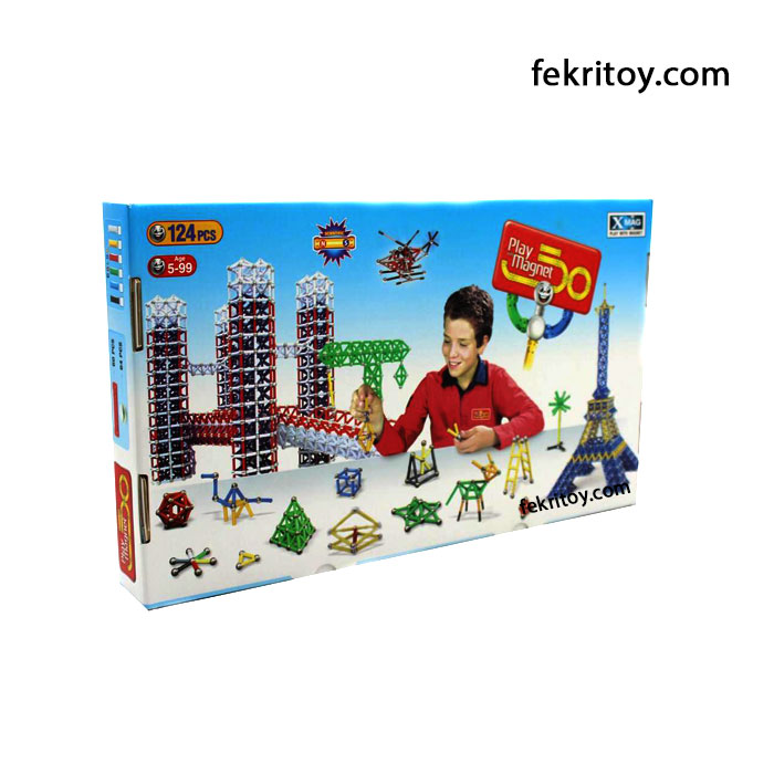 مگ مغناطیسی 124 قطعه شامل قطعات آهنربایی در رنگ آمیزی شاد و درخشان است. کودک باید به کمک قدرت تخیلات خودش اشکال و سازه های هندسی مختلفی بسازد. با کنار هم چیدن قطعات به دلیل خاصیت مغناطیسی که دارند قطعات بخوبی بهم می چسبند و می توان اشکال دو بعدی و سه بعدی متفاوتی را ساخت. این اسباب بازی بی انتها است یعنی مدلسازیی که کودک انجام می دهد برگرفته از قدرت خلاقیت بی انتها است.