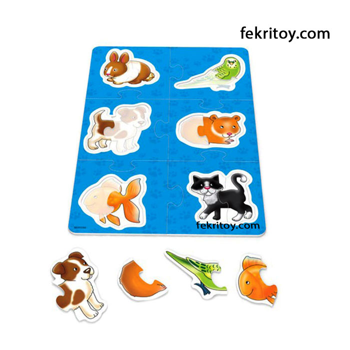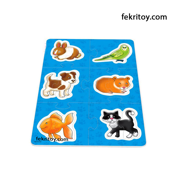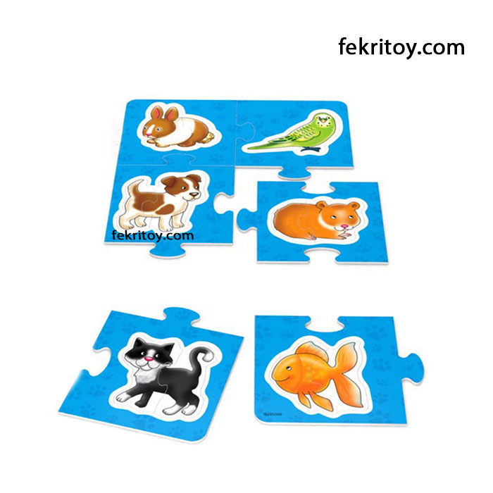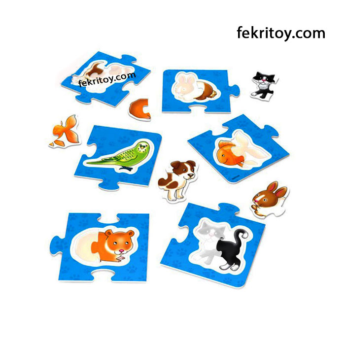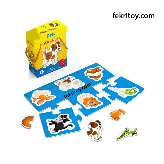 در حین بازی درباره اشکال موجود در پازل ها با کودک گفتگو کنید و حتی می توانید درباره آن ها قصه بگویید. پازل جعبه ای حیوانات خانگی را می توانید از سایت پرفسور کوچولو تهیه نمایید.