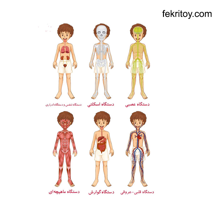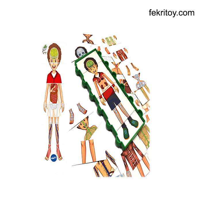 همراه این کمک آموزشی یک دفترچه راهنما حاوی توضیحاتی درباره کارکرد اندامهای داخلی و دستگاه های مختلف بدن انسان قرار داده شده است تا کودکان و نوجوانان ضمن بازی با آناتومی بدن انسان نیز آشنا شوند. این محصول از۶ لایه ۶ قطعه ای که هر کدام یکی از دستگاه های بدن را می سازند تشکیل شده است که به صورت جورچین روی پایه پلاستیکی همراه مجموعه چیده می شوند.