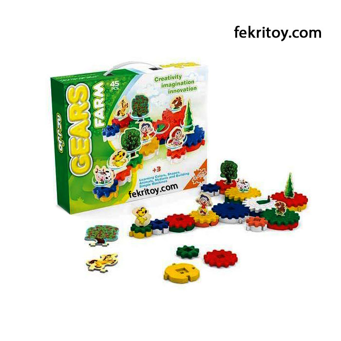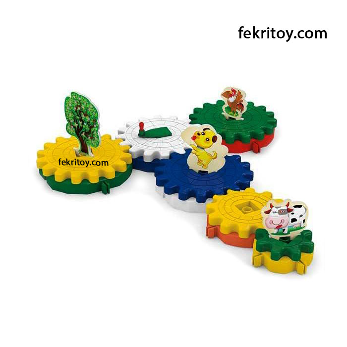 ابتدا پایه ها را مانند جورچین به هم متصل کنید سپس چرخ دنده ها را به کمک اتصالات بر روی پایه ها بگذارید، دقت کنید نباید اتصال چرخ دنده ها از هم قطع شود بعد از چیدن خلاقانه چرخ دنده ها به سراغ اِلمان تصویری بروید آنها را سوار بر چرخ دنده کنید و دسته پلاستیکی بچرخانید چه هیجان انگیز، تمام مزرعه در حال چرخیدن است. ساختنی چرخ دنده مزرعه را می توانید از سایت پرفسور کوچولو تهیه نمایید.