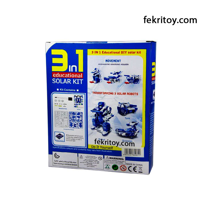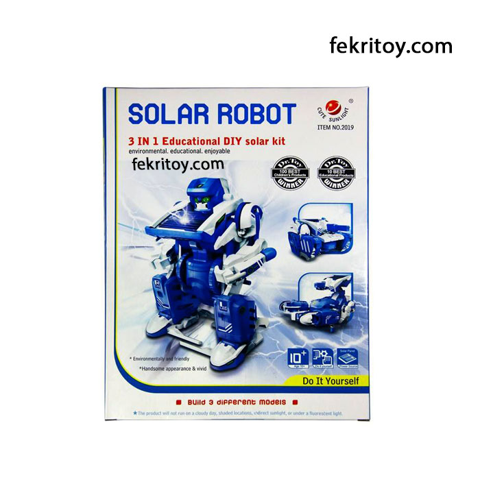 این ساختنی 2019 ربات خورشیدی 3 مدل برای گروه سنی بالاتر از 3 سال طراحی شده است به 3 مدل متفاوت قابل تبدیل است و نیاز به هیچ وسیله ای برای تبدیل آنها نیست و چون با انرژی خورشید یا هر نور دیگری کار می کند نیازی به باتری هم ندارد. ساختنی 2019 ربات خورشیدی 3 مدل را می توانید از سایت پرفسورکوچولو تهیه نمایید.
