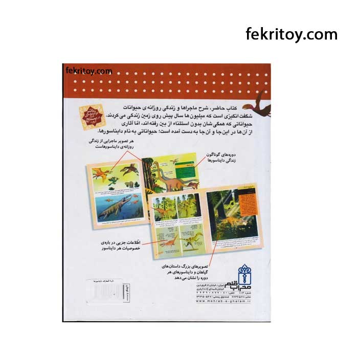 کتاب دایره المعارف دایناسورها، شرح ماجراها و زندگی روزانه حیوانات شگفت انگیزی است که میلیون ها سال پیش روی زمین زندگی می کردند. حیواناتی که همگی شان بدون استثناء از بین رفته اند، اما آثاری از آن ها در این جا و آن جا به دست آمده است؛ حیواناتی به نام دایناسورها. کتاب دایره المعارف دایناسورها را می توانید از سایت پرفسور کوچولو تهیه نمایید.