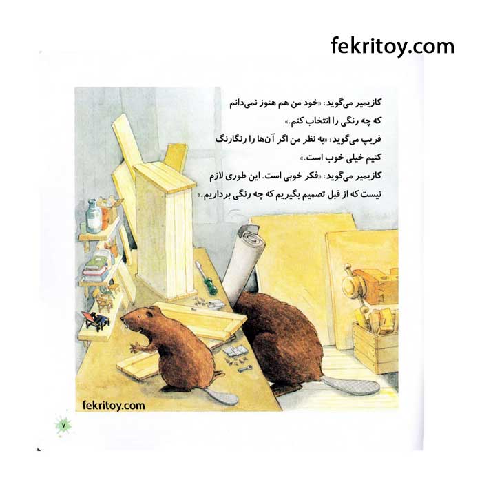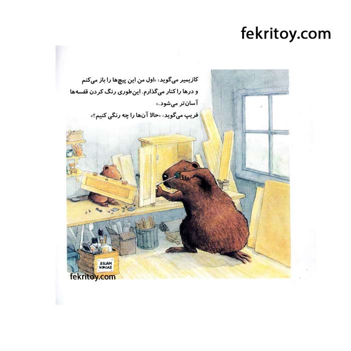 «کازیمیر رنگ آمیزی می کند» داستانی در مورد یک سگ آبی به نام کازیمیر است که تصمیم می گیرد یک قفسه زیبای قدیمی را رنگ آمیزی کند. کازیمیر ابتدا درهای قفسه را باز میکند تا رنگآمیزی راحتتر انجام شود. برای رنگآمیزی به جز رنگ لوازم دیگری هم نیاز است.