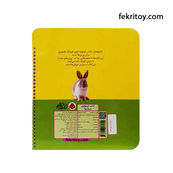 مجموعهی «کتاب کوچولو» اولین فرهنگ تصویری برای نینیها است. این کتابها با تصویرهای جذاب و با کیفیت، نینیهای شما را با دنیای اطراف آشنا میکند. این کتاب دربارهی حیوانات است. جنس ورقه ها ضخیم می باشد که کودک به راحتی نمی تواند آن را پاره کند. کتاب کتاب کوچولوی حیوان ها را می توانید از سایت پرفسور کوچولو تهیه نمایید.