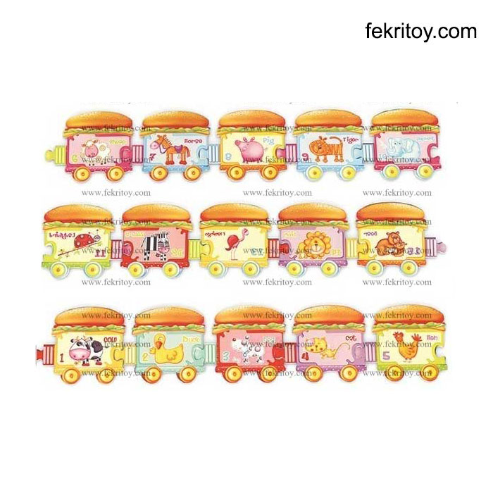 بر روی هر واگن یک عدد از 1تا15 نوشته شده است که کودک ضمن بازی و قرار دادن آنها به ترتیب در نهایت به شکل قطار دست پیدا می کند و در کنار هر واگن نیز اسم یک حیوان به انگلیسی نوشته شده است.بازی با این پازل علاوه بر آشنایی کودکان با واژگان انگلیسی