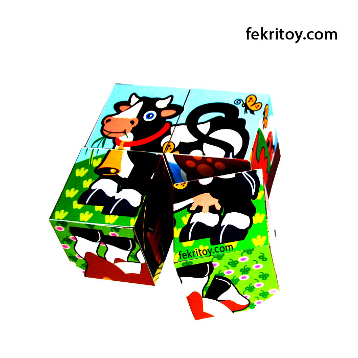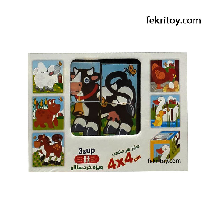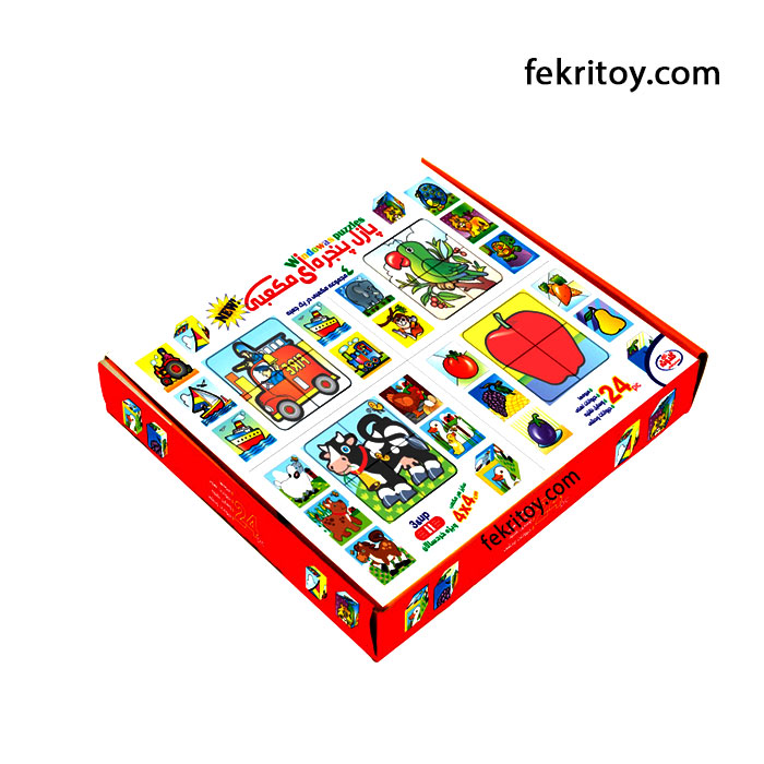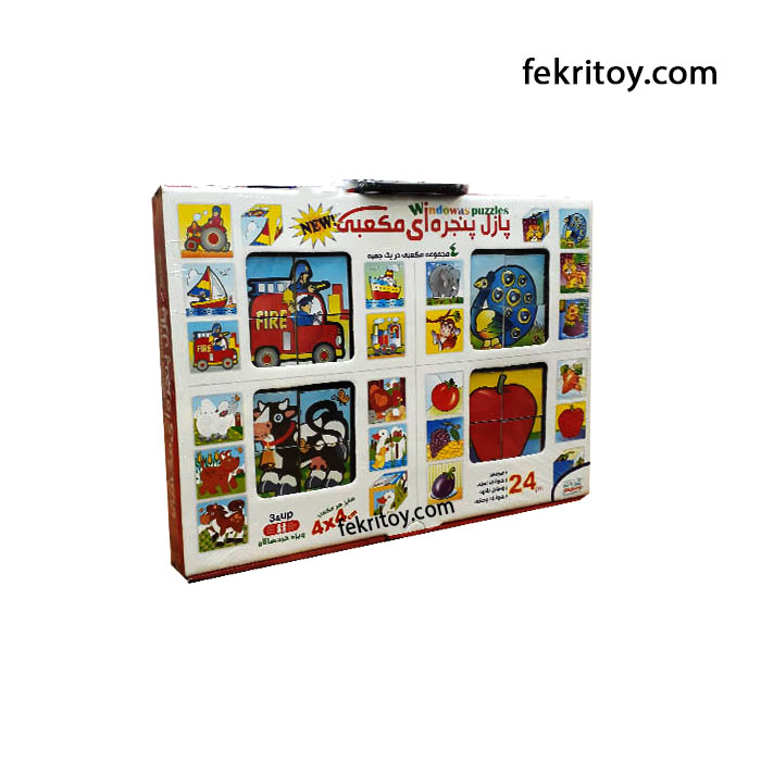 پازل مکعبی پنجره ای دارای ۱۶ مکعب ۴ در ۴ سانت هست که کودک با این بازی می تواند ۲۴ تصویر را جدا جدا بسازد.